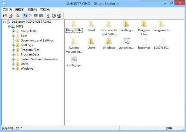 展开树:gho映像文件内置多个子文件的时候,可以使用展开功能全部查看