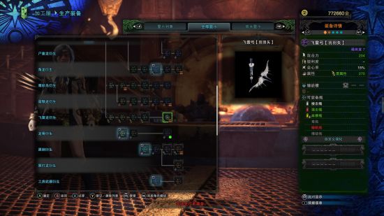 除了羽羽矢统一240的属性面板,在上边那套配装里能达到的最高会心比主流的弓要高一些,火龙弓会心真的很够用甚至可以客一个孔来插属性珠,如果不要强击瓶改用凯罗王弓的话可以进一步拉高属性。水弓相对比较差,不过也能玩一玩,打打烤鱼和爆锤还是比较容易的。羽羽矢作为前雷弓扛把子还算有些排面,客一孔一会心或两会心都可以(个人建议孔)。